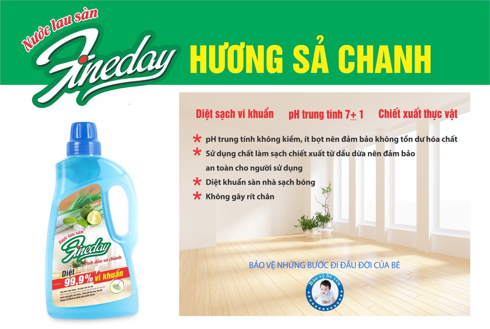 - Diệt khuẩn sàn nhà sạch bóng.